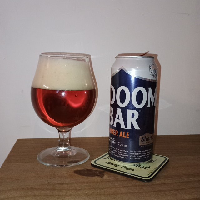 Doom Bar. Dark amber beer, slight caramel aroma. Generic, slightly syrup, bitter taste and after.