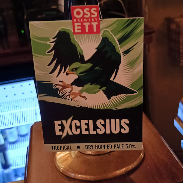 Gold. OK creamy head as poured, with full surface retention and solid lacing. Celery hop aroma. Similar taste and after. Light and wet, with some chili effervescence (more than ‘peppery’, not quite ‘sharp’).