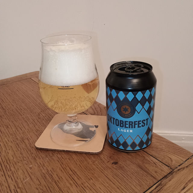 Dark gold. Some head on pour, OK surface retention with very loose lacing. Floral brine aroma. Similar taste, sweeter after. Wet, lightly sparkling. Label was wrapped around a Freedom Pils can – different ABVs (4.4 compared to 4 for this) so I THINK they’re using up spare stock, rather than rebranding beers…